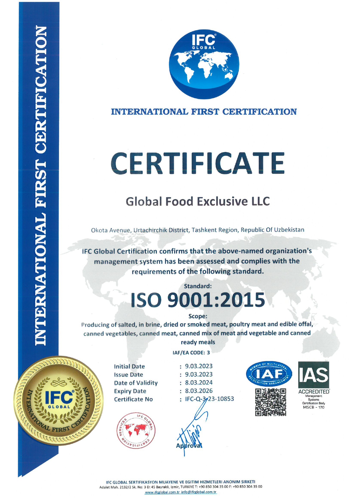 Сертификат ISO 9001Сертификат ISO 9001 — это международный документ, подтверждающий, что система менеджмента качества (СМК) компании соответствует требованиям стандарта ISO 9001. Этот стандарт разработан Международной организацией по стандартизации (ISO) и применяется к любому типу организации — независимо от её размера, отрасли или сектора.